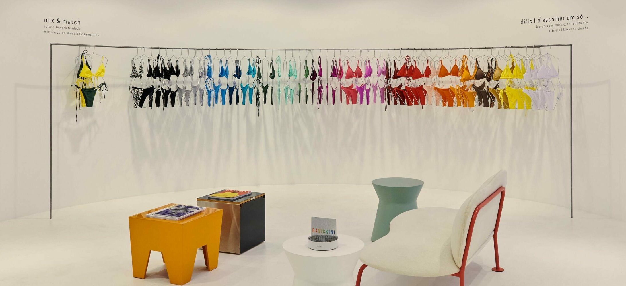 Inaugurada no dia 2 de junho de 2022, a loja tem a intenção de expandir o contato com as nossas Basickini Girls. Desde a escadaria, sendo surpreendida coloridamente pela nossa arara arco-íris.